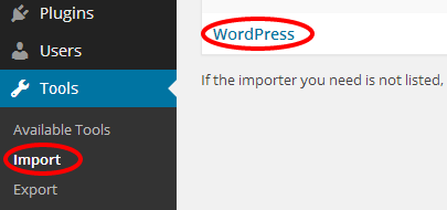 WordPress might offer you to install the WordPress Importer plugin, if you haven't installed it before do it now.